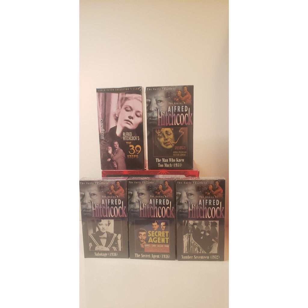 Lot of 5 New Sealed VHS tapes of Alfred Hitchcock's movies including: The 39 Steps, Number Seventeen, The Man Who Knew Too Much, Secret Agent, Sabotage.
