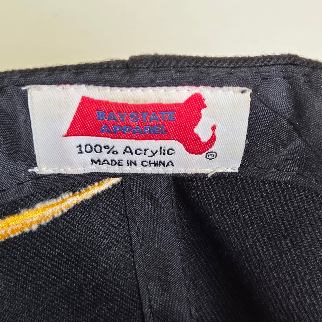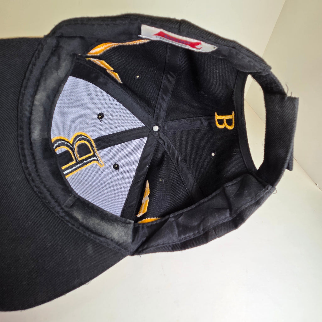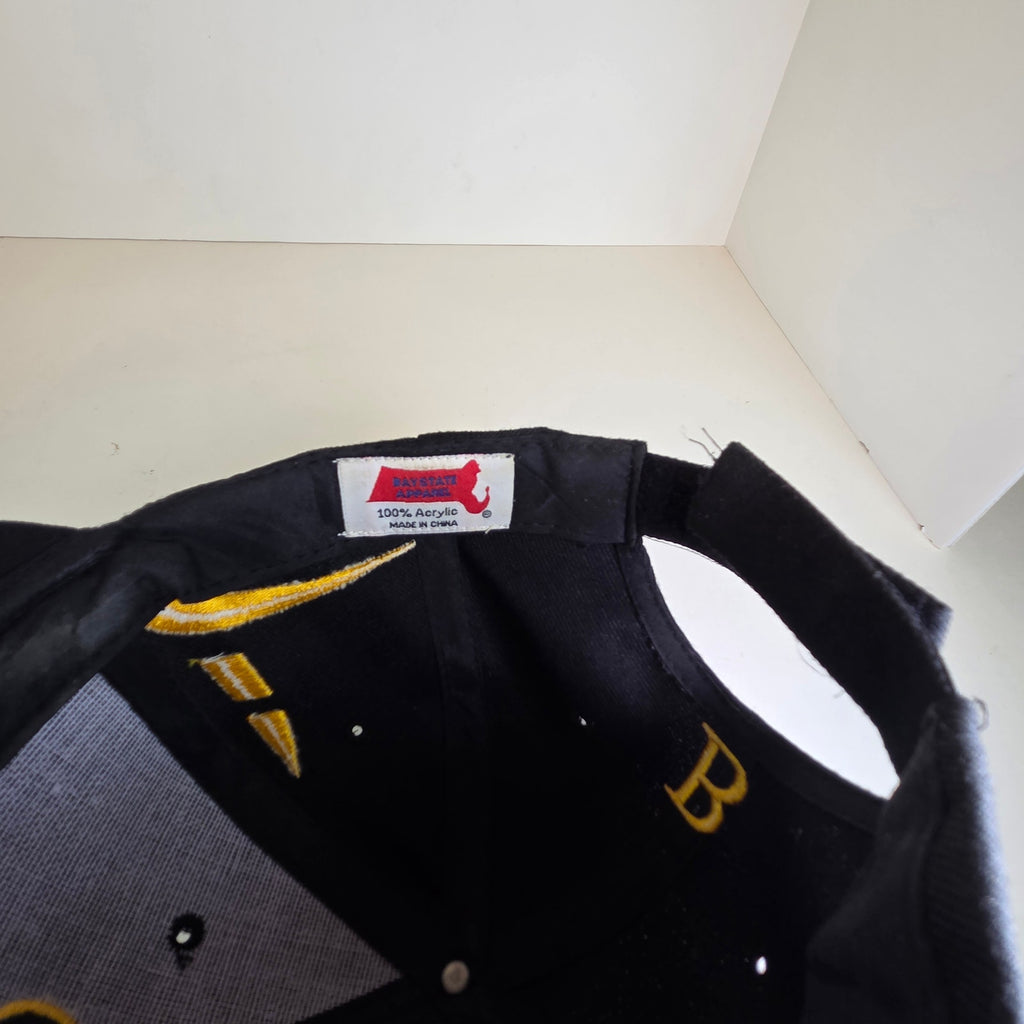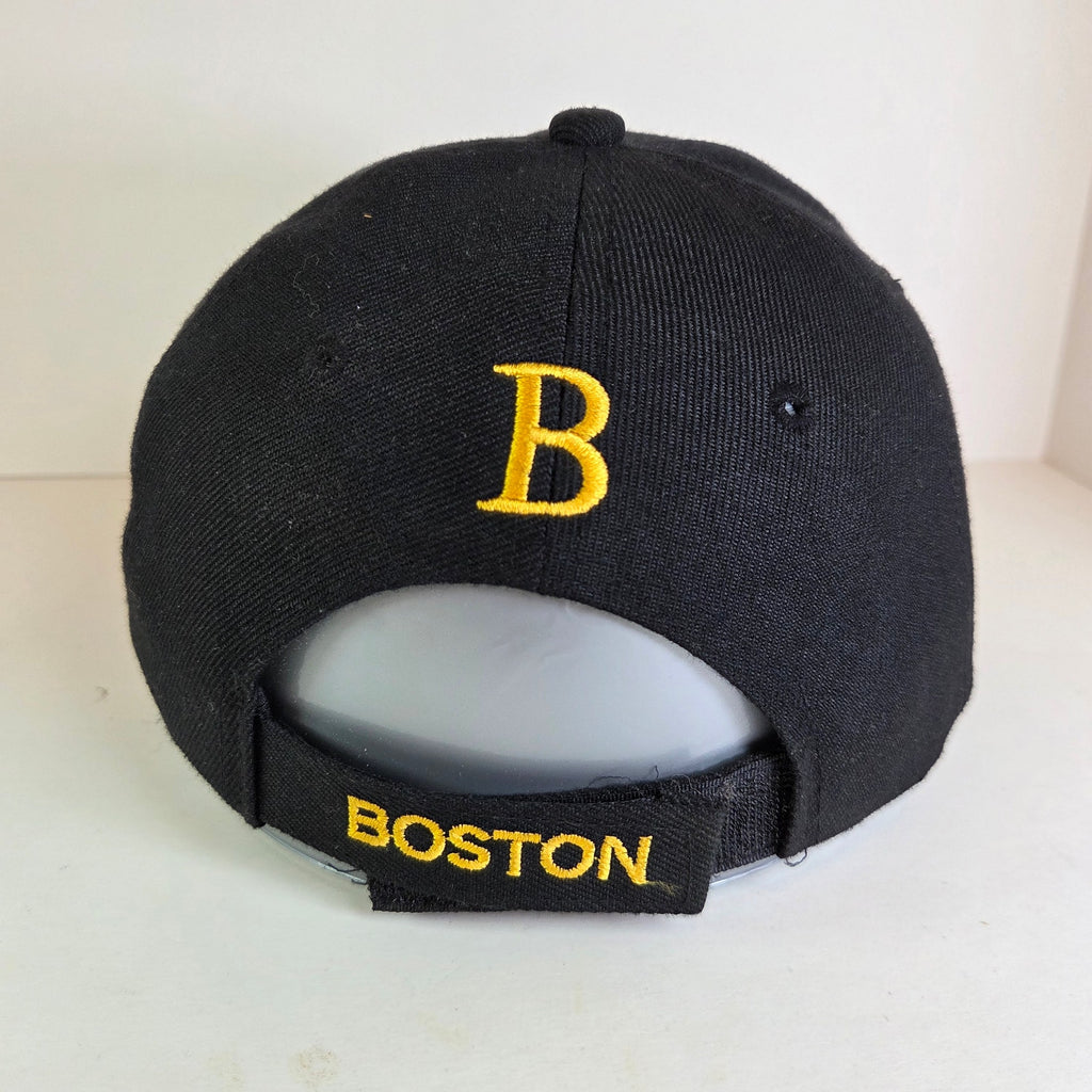 Show off your city pride with this bold black and white Boston flat brim hat. Features a crisp embroidered design and adjustable hook-and-loop strap for a comfortable fit.