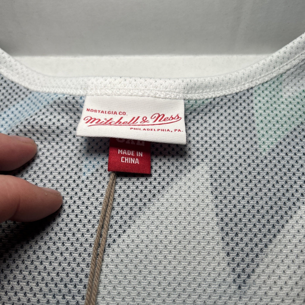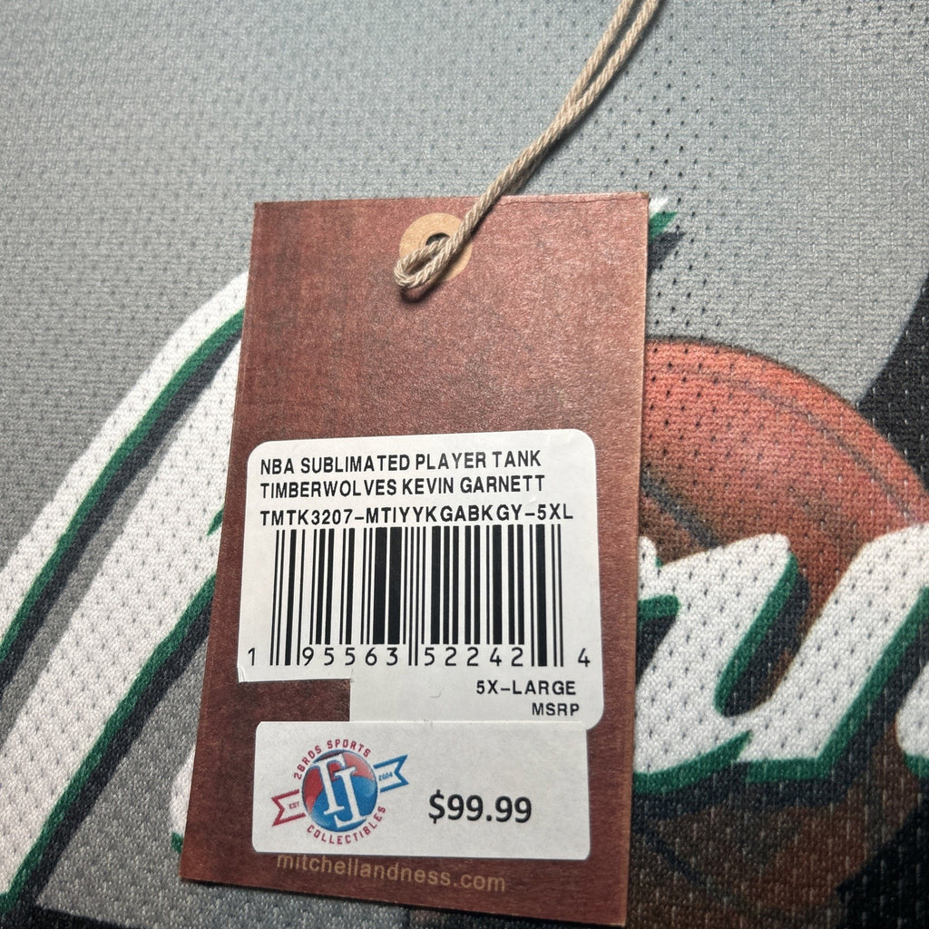 The product is a Kevin Garnett Minnesota Timberwolves Mitchell & Ness NBA sublimated player tank in size 5XL. This officially licensed shirt features the iconic player's image and colors representing the team. Made for men who are fans of the National Basketball Association (NBA), this shirt is a must-have for supporters of the Minnesota Timberwolves and basketball enthusiasts in general. The shirt is designed with high-quality materials and attention to detail, making it a great addition to any sports memorabilia collection.