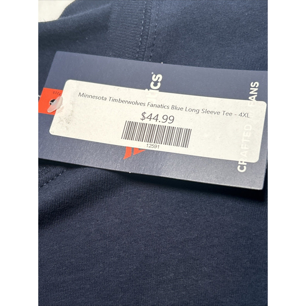 The Minnesota Timberwolves Fanatics Navy Blue Long Sleeve Shirt in size 4XL is a stylish and comfortable piece of fan apparel for supporters of the NBA team. With the official team logo and colors, this shirt is a must-have for any Timberwolves fan looking to show their team pride. Made by the reputable brand Fanatics, this shirt ensures quality and durability for fans to wear during games or out in the community.