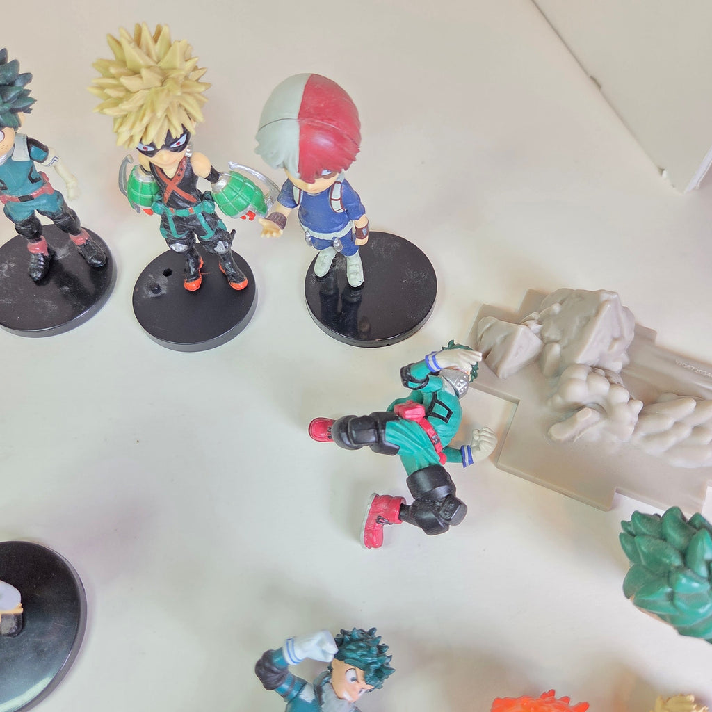 Bring home a collection of heroes from My Hero Academia! This mixed lot of mini anime figures features fan-favorite characters like Deku, Bakugo, and Todoroki, perfect for display or completing your set. Figures range around 2–3" tall, with some bases included.