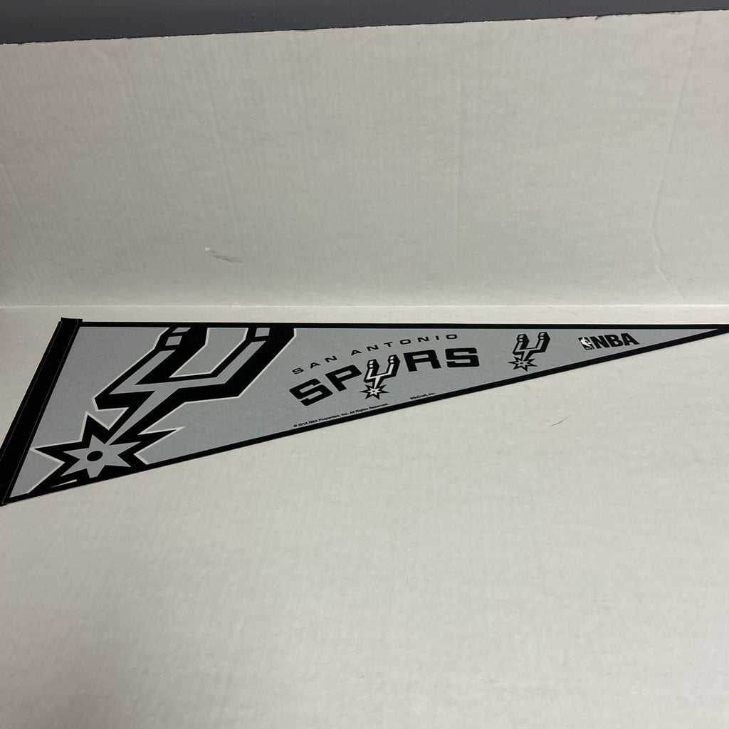 The New San Antonio Spurs NBA 12" X 30" Wincraft Felt Pennant is an officially licensed product featuring the team's nickname, the San Antonio Spurs. Made of felt material, this pennant is a great way for fans to show their team pride during the regular NBA season. Measuring 12 inches in width and 30 inches in length, this black pennant is a perfect addition to any basketball fan's collection. Perfect for decorating a fan cave or displaying at a game, this Wincraft pennant is a must-have for any Spurs supporter.
