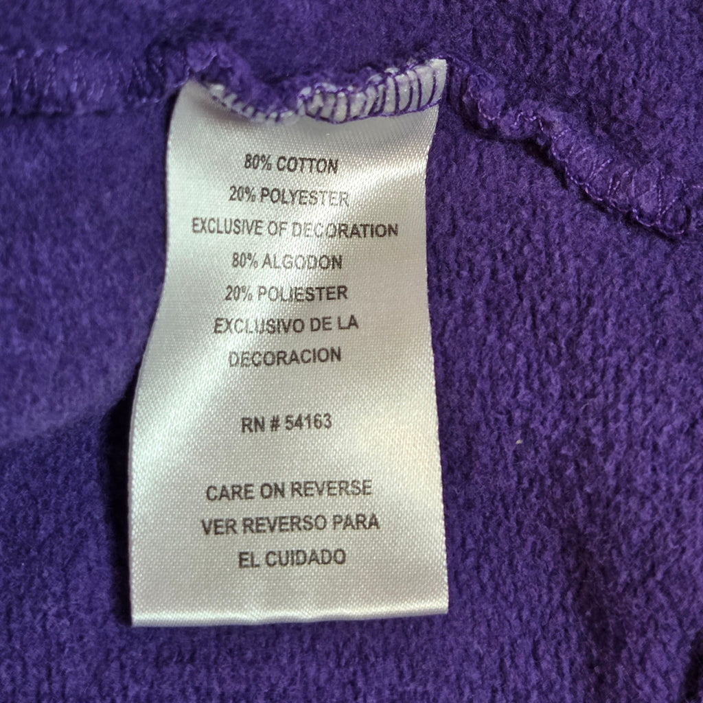 Minnesota Vikings full-zip hoodie by NFL Team Apparel featuring a fleece interior, embroidered Vikings logo, and bold chest applique. Purple body with gold hood lining and white shoulder panels for team style. Soft, heavy cotton-blend fabric with excellent color and minimal signs of wear.