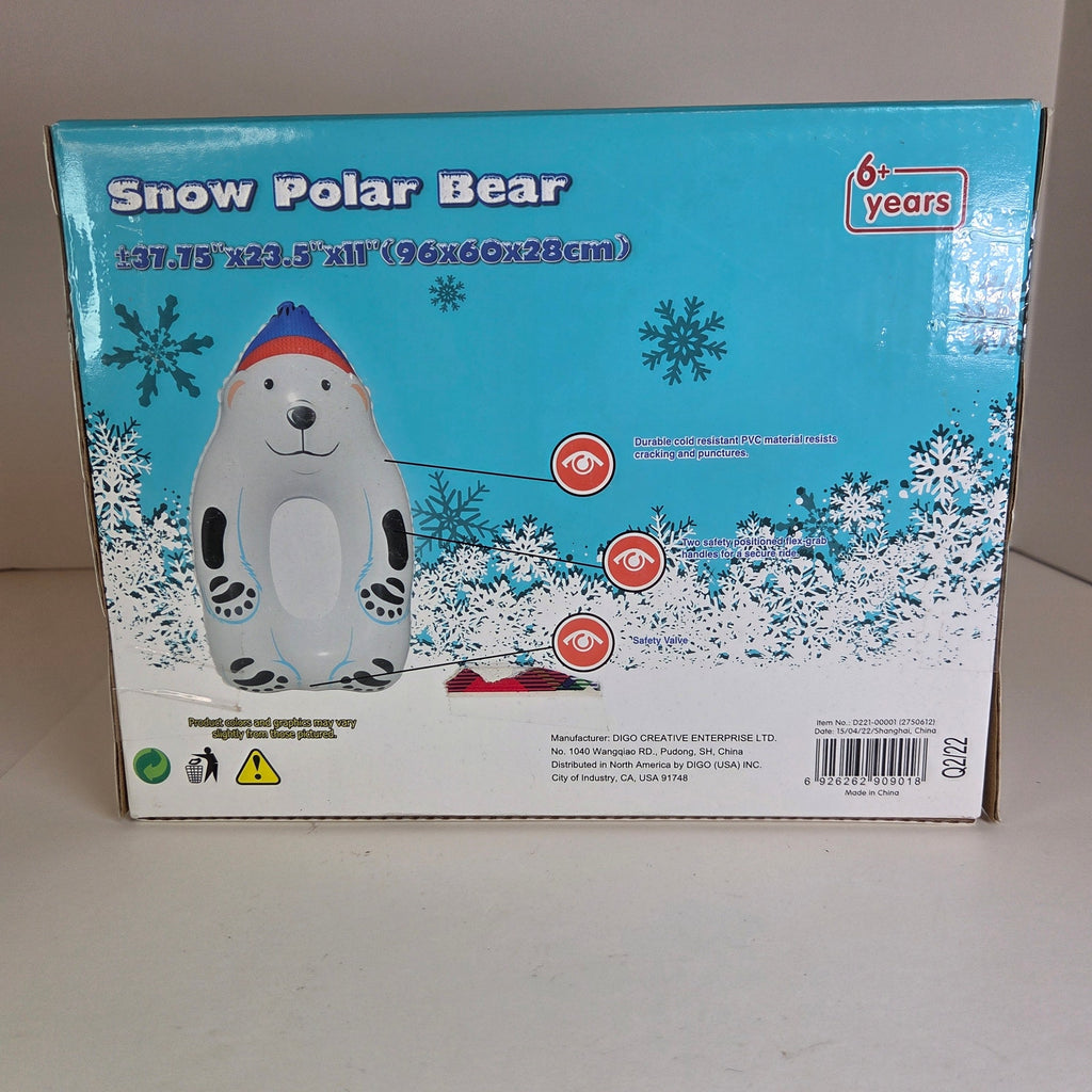 Add some fun to your winter adventures with this inflatable Snow Polar Bear snow tube. Designed for kids ages 6 and up, this durable PVC sled features two freeze-resistant handles, a safety valve, and comes with a repair patch—perfect for snowy hills and family fun.