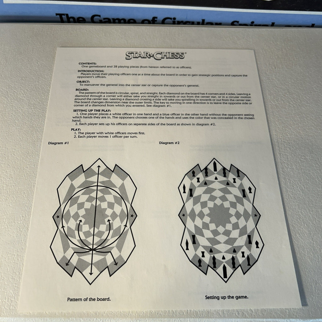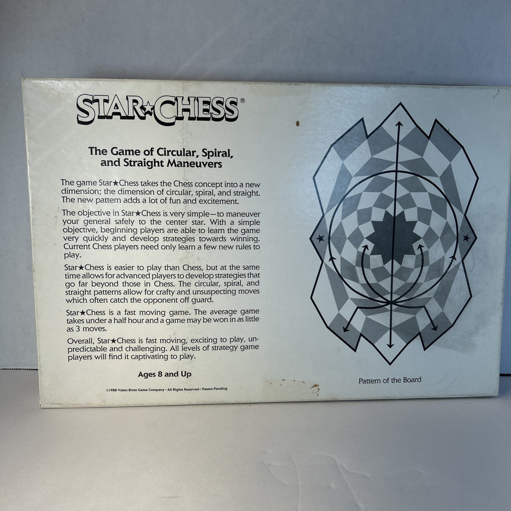 This set includes the original box, board, playing pieces, and instruction booklet. A challenging and collectible strategy game perfect for chess enthusiasts and vintage board game collectors.