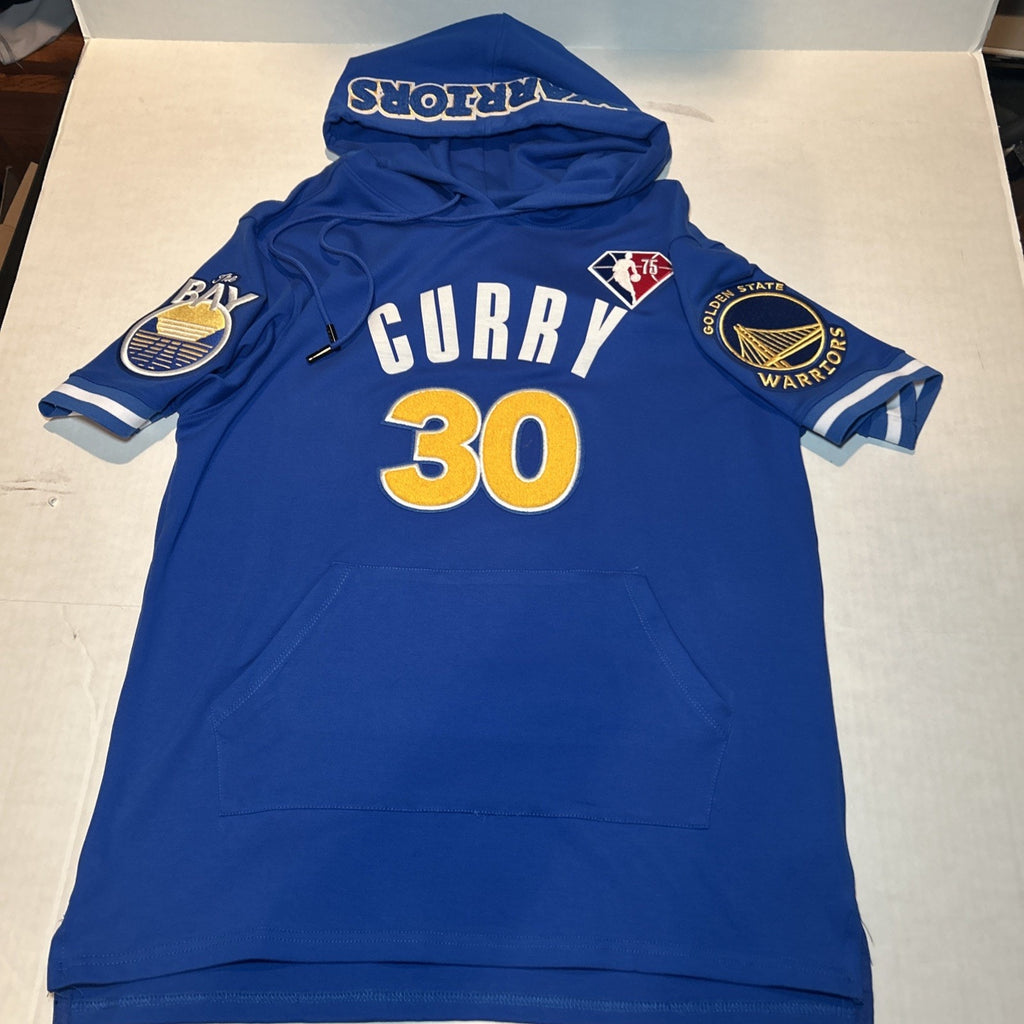 Show off your Golden State Warriors pride in style with this officially licensed Stephen Curry #30 hoodie by Pro Standard. This short sleeve hoodie is part of the NBA's 75th Anniversary collection and features bold embroidery on both sleeves—including "The Bay" and team logo patches—plus “WARRIORS” stitched across the hood.