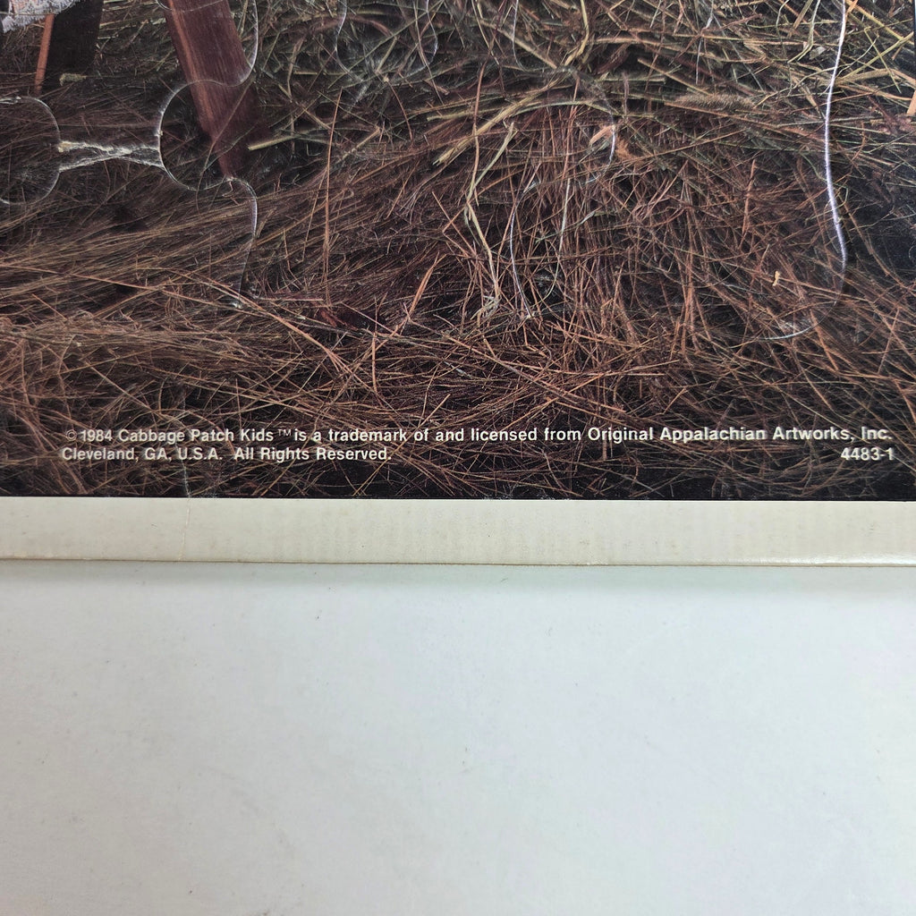 Step back into the 1980s with this vintage Cabbage Patch Kids 25-piece tray puzzle from 1984. Made by MB Toys under license from Original Appalachian Artworks, Inc., this collectible puzzle features three adorable Cabbage Patch dolls in a barnyard setting. The puzzle is complete with all 25 pieces and shows normal vintage wear from play and age. A charming addition for any Cabbage Patch Kids collector or retro toy enthusiast.