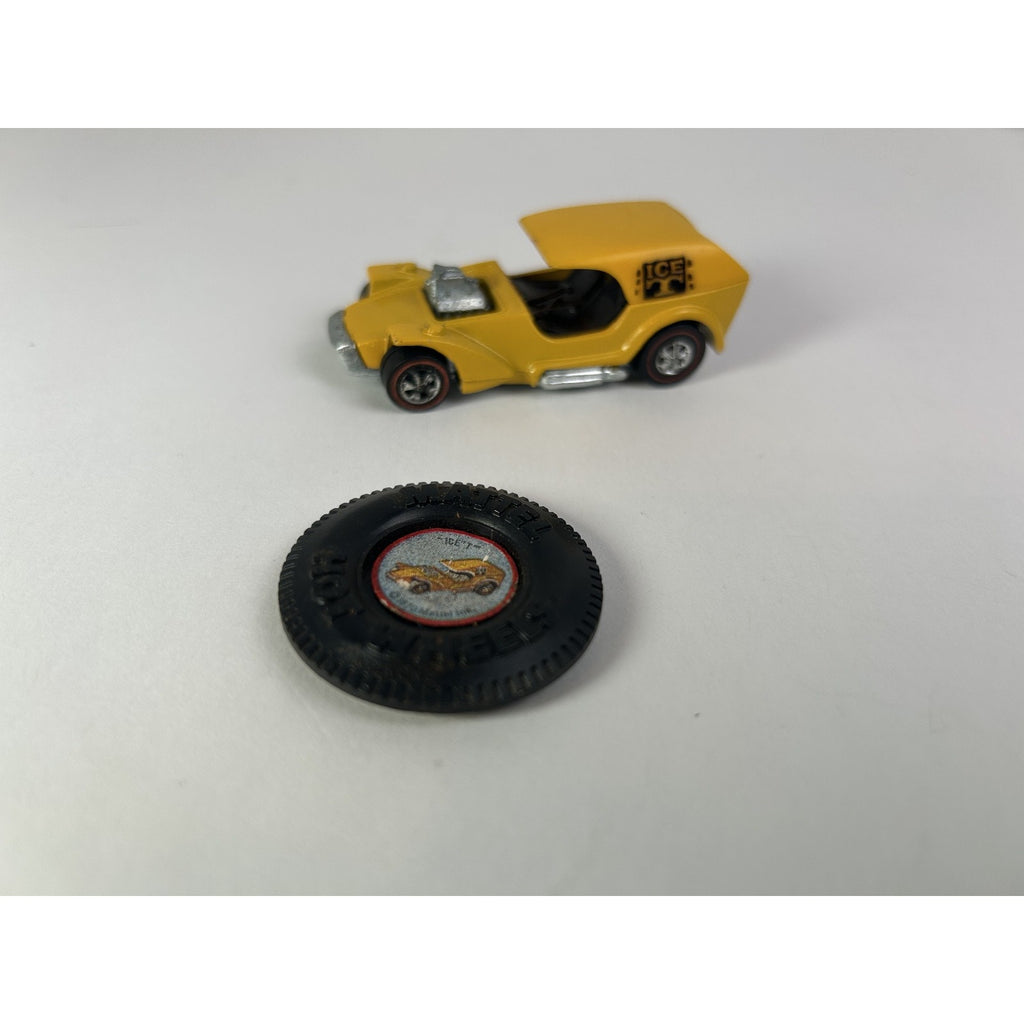 Vintage Hot Wheels Redline Ice T Yellow Diecast Car 1969 Hong Kong Button Case