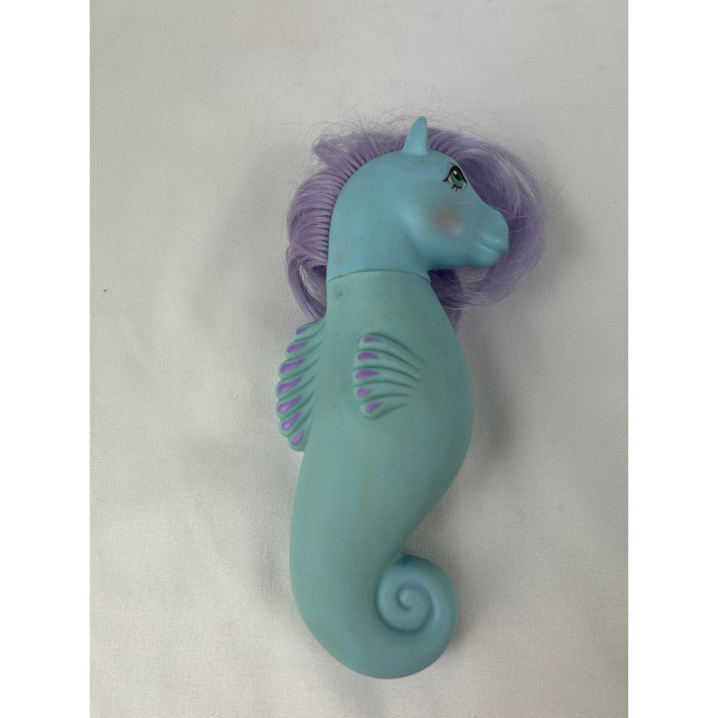 Lot of vintage My Little Pony Sea Ponies and Baby Sea Ponies from the original G1 era by Hasbro. These seahorse-style ponies were designed for bath-time play and feature molded fins, curled tails, and brushable hair.